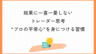 大事なこと結果に一喜一憂しないトレーダー思考|“プロの平常心”を身につける習慣 トレードの敵は「負け」ではなく、「感情の波」 トレードで長期的に勝ち続ける人と、途中で挫折してしまう人。その違いは“手法”でも“資金量”でもなく、メンタルの安定度です。 多くの人は、勝てば喜び、負ければ落ち込みます。これは当然... 2025.10.27大事なこと