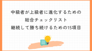 大事なこと中級者が上級者に進化するための総合チェックリスト|継続して勝ち続けるための15項目 50記事目に寄せて:「上級者」とは何か? トレードを始めて数ヶ月、基礎を理解し、ある程度の勝率を出せるようになった。──それでも、「安定して勝ち続ける」段階に到達できる人はほんの一握りです。 上級者とは、特別な才能を持った人で... 2025.10.21大事なこと