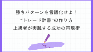 上級者勝ちパターンを言語化せよ!“トレード辞書”の作り方|上級者が実践する成功の再現術 勝ち方を“感覚”で終わらせていませんか? あなたは、最近勝ったトレードを「なぜ勝てたのか」説明できますか? 多くの中級者は、「感覚的にうまくいった」「なんとなく反発した気がした」で終わらせてしまいます。しかし、上級者は違います... 2025.11.04上級者