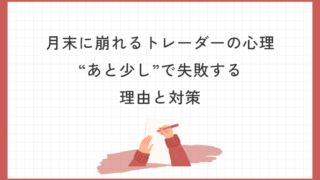 女性・副業月末に崩れるトレーダーの心理|“あと少し”で失敗する理由と対策 ◆ なぜ月末になると崩れてしまうのか? 「今月あと3,000円で目標達成なのに…」「ここで負けたくない…」「今月こそはプラスで終わりたい」 こう思い始めた瞬間、トレードは一気に崩れやすくなります。 特に副業・女性トレーダ... 2026.03.17女性・副業