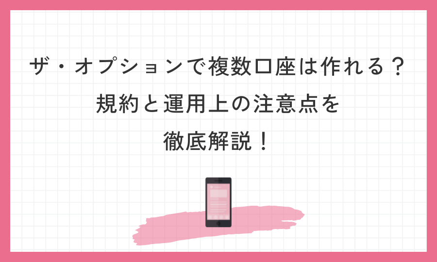 この記事では、ザ・オプションの複数口座に関する公式見解と注意点、実際にやってしまった場合のリスク、例外的なケースまで詳しく解説していきます。