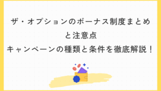 ボーナス&キャンペーンザ・オプションの期間限定キャンペーンまとめ|種類別の特徴とお得に活用する方法を徹底解説! キャンペーンを活用すれば、取引がもっとお得になる! ザ・オプションでは、常設のボーナス制度に加えて、期間限定のキャンペーンが定期的に開催されています。これらをうまく活用することで、入金額に対するリターンが増えたり、取引量に応じた還元... 2025.05.14ボーナス&キャンペーン